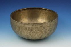 This bowl has a diameter of 29½ cm and a height of 13½ cm. It weighs about 2370 grams. A wood/leather playing stick and a felt mallet is included.