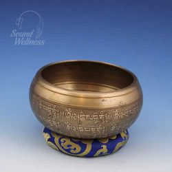 This bowl has a diameter of 14½ cm and a height of 7 cm. It weighs about 840 grams. A wooden playing stick is included